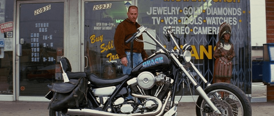 In the film, the motorcycle is spared the stress of any stunts and is used for riding shots only. Despite having barely over 2 minutes of screen time, the bike has had a lasting cultural impact. Real-world copies of Grace have been constructed by Pulp Fiction fans since the movie’s release, and the scene in which Butch picks up his lover Fabian on the bike is one of the film’s most quotable scenes: