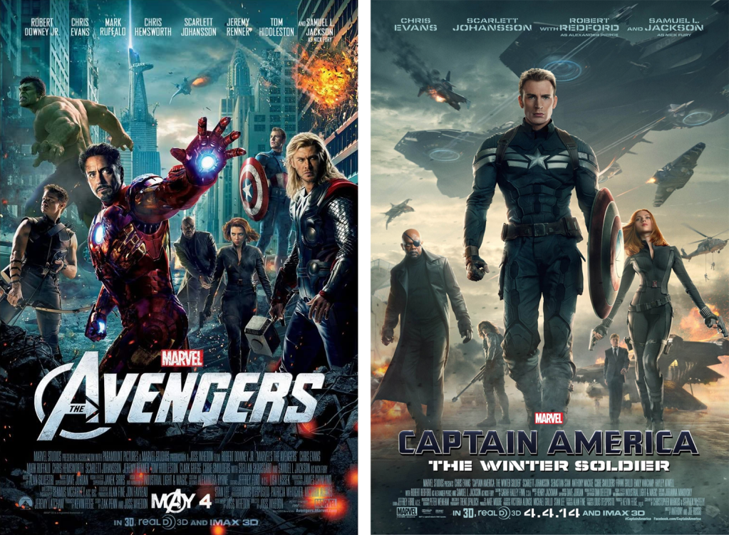 Posters for The Avengers (2012) and Captain America: The Winter Soldier (2014)