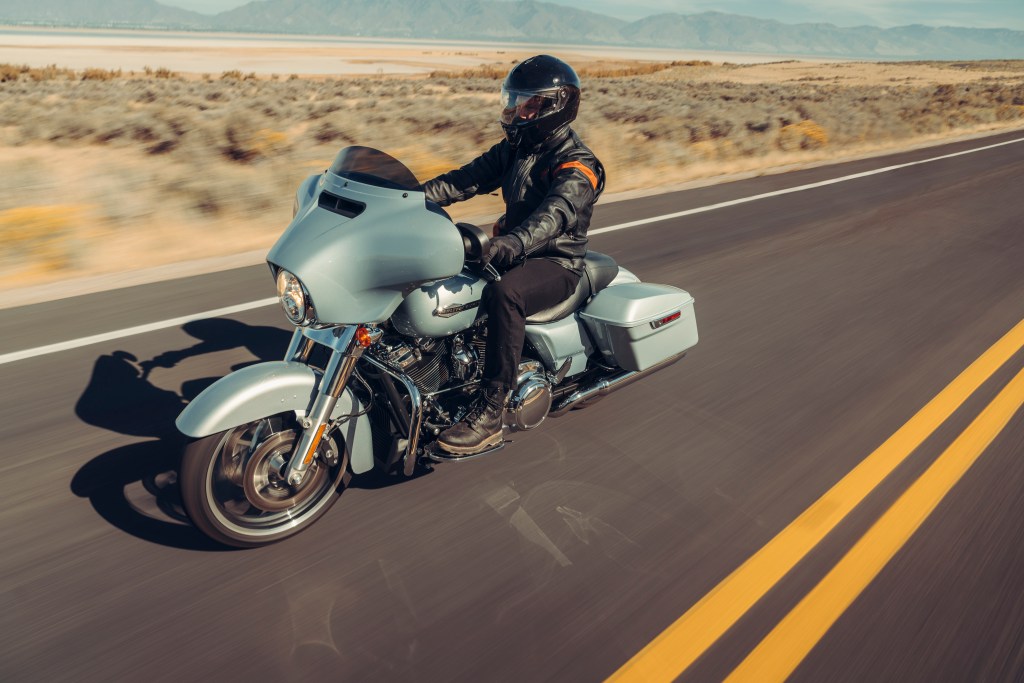 Vivid Black remains as a standard colour for 2023, but Midnight Crimson and White Sand Pearl are replaced with Redline Red and Atlas Silver Metallic. Now there’s a colour option for every type of bagger-rider.