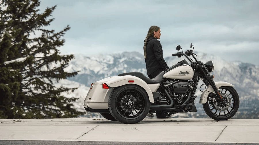 Road Glide™ is a legendary part of motorcycle history for Harley-Davidson®, but we’ve never seen it on three wheels until now. Some riders were looking for the music, the fairing, the historical look of Road Glide™. Bringing all those together in one motorcycle was the goal of Road Glide™ 3. The wheels are big, bold, and beautiful, with a 19 inch front and 18 inch rears, and the infotainment system consists of a Boom!™ GTS 6.5-inch colour TFT touch screen. The engine design is classic Harley-Davidson®, a V-Twin with 45-degree cylinder angle for that iconic look-sound-feel.